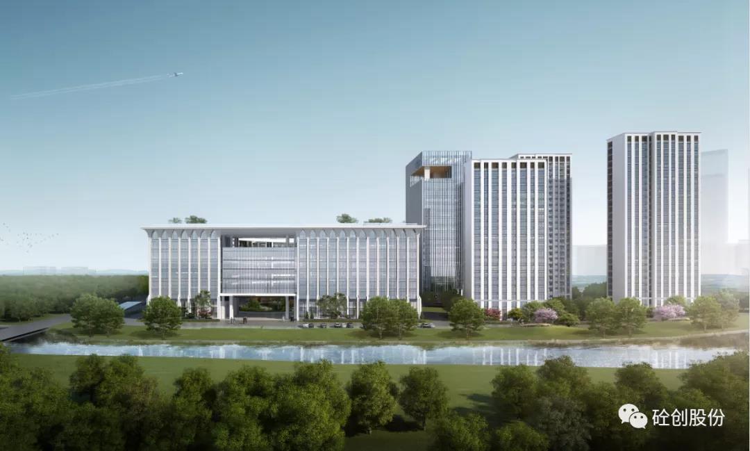 寧波工業互聯網研究院產業園是擁有國際視野,面向市場的創新型科技產業園,外立面的裝飾材料也極具“工業風”和“商務”美感。整個建筑幕墻采用25MM厚度的GRC面板、GRC弧形板及GRC線條拼接而成,應用面積約2萬平。